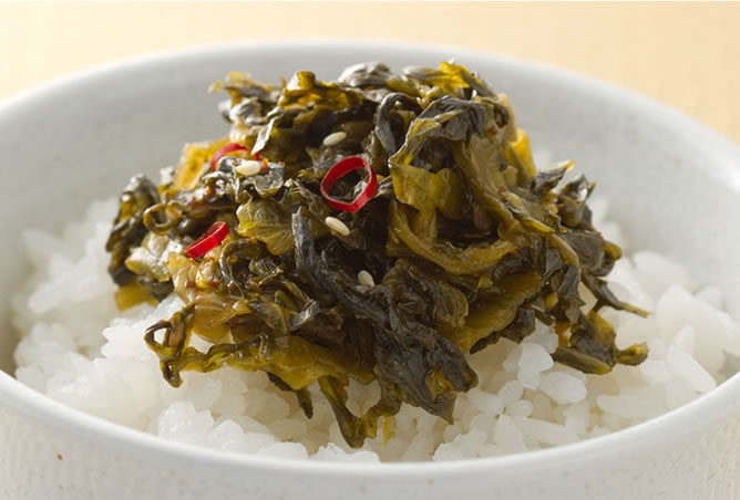 高菜のつけものはもともとピリッとした風味を持ちますが、唐辛子が入る分さらにピリ辛に仕上がっているんです。唐辛子を大量に使った大辛という商品もあり、辛い物好きにはたまりません!